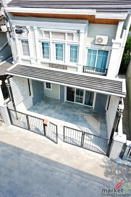Bangna-SuanLuang story corner townhouse 4bed 3bath near Ramkhamhaeng University 2 1.7km. and community market 20sq.wa. 160sq.m. 19,999B-M located on Kanchanaphisek Road English style house suitable for residence home office and investment near Anchanthani Industrial Estate Bangkok 900 m. Thung Setthi Intersection Gold