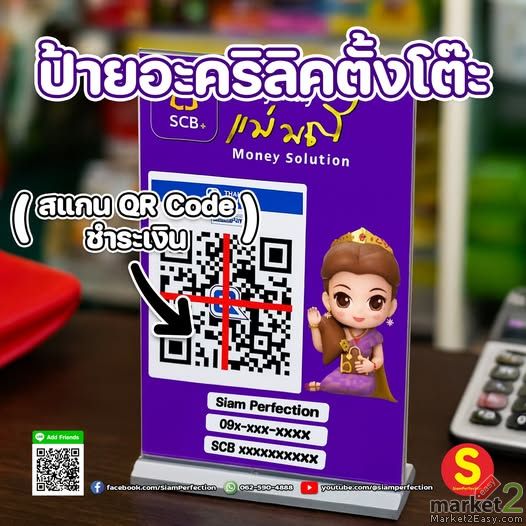 ป้ายอะคริลิคตั้งโต๊ะ สแกนจ่ายได้ทันที