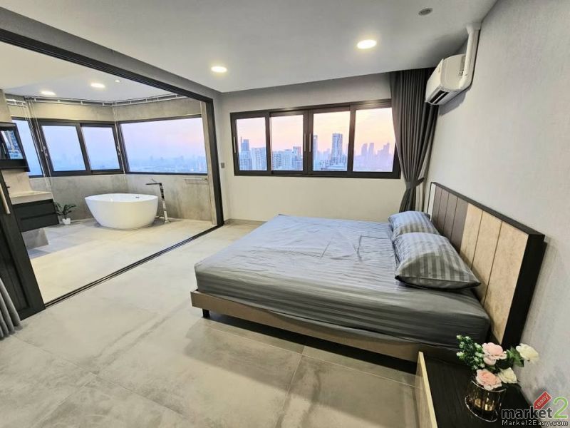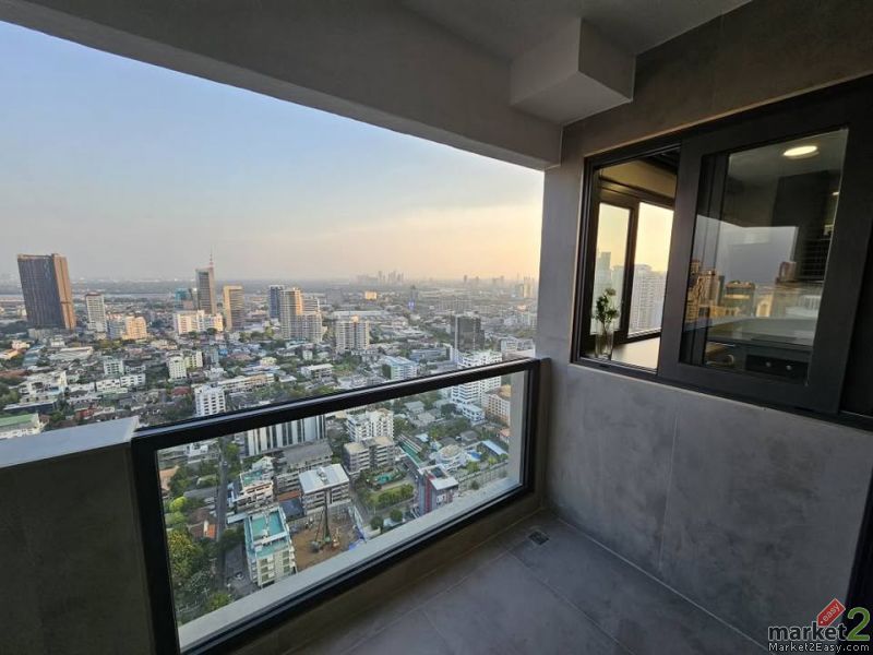 The unit offers panoramic views of the river city skyline and nearby park making it ideal for luxury living in central Bangkok.