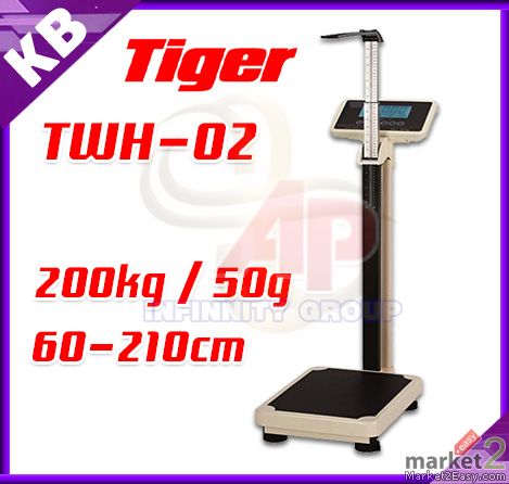 เครื่องชั่งน้ำหนักพร้อมวัดส่วนสูง เครื่องชั่งน้ำหนักบุคคล พิกัด 200kg ค่าละเอียด 50g วัดส่วนสูงได้ 60-210cm เครื่องชั่งดิจิตอล ตาชั่ง ยี่ห้อ TIGER รุ่น TWH-02