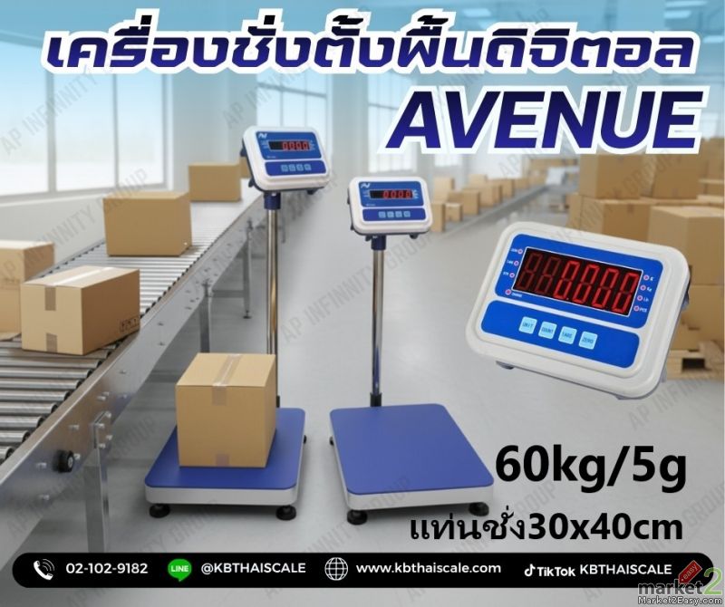 เครื่องชั่งน้ำหนัก เครื่องชั่งดิจิตอล เครื่องชั่งตั้งพื้น (แท่นชั่งมีระดับน้ำ) ชั่งได้ 60kg ค่าละเอียด 5g ขนาดแท่น 30x40cm ยี่ห้อAVENUE รุ่น AV Series พิกัด 60kg/5g