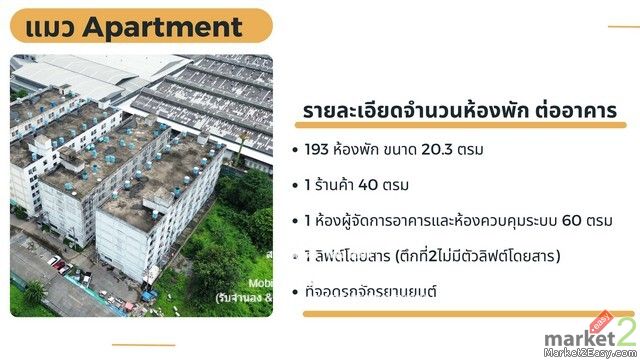 DSL-257 สนใจติดต่อ: โดม รัชดา (Exclusive Contract) โทร: 065-586-9872 ไลน์ไอดี: 0655869872 หรือ giantmw หรือ @yem0202n Facebook: https://bit.ly/3vdegO8 Fanpage: https://bit.ly/488TrlD . ขายห้องพักรายเดือน (Apartment) 6 ชั้น (2 อาคาร: 386 ห้อง) ซอยเอกชัย 78, ราคา 70 ล้านบาท . รายละเอียดทรัพย์: 1.) ห้องพักรายเดือน (Apartment) 6 ชั้น มี 2 อาคาร จำนวน 386 ห้อง เนื้อที่ดิน 586.70 ตร.ว. รวมพื้นที่ใช้สอยประมาณ 10,000 ตร.ม. 2.) ห้องพัก ขนาด 20.3 ตร.ม., ร้านค้าขนาด 40 ตร.ม., ห้องผู้จัดการอาคาร และห้องควบคุมระบบ 60 ตร.ม. (มีลิฟต์โดยสาร 1 อาคาร (แต่ไม่ได้ใช้งานแล้ว) และอีกอาคารไม่มีตัวลิฟต์โดยสาร) และมีที่จอดรถยนต์-รอบตัวอาคาร . จุดเด่นของทรัพย์: ราคาดี ทำเลอยู่ในแหล่งชุมชน, ย่านอุตสาหกรรม (โรงงาน) และแหล่งการค้าที่มีความต้องการที่พักอาศัยสูงที่สามารถเดินทางสะดวก . สถานที่ตั้ง: ซอยเอกชัย 78 แขวงคลองบางพราน เขตบางบอน กรุงเทพมหานคร . สถานที่สำคัญใกล้เคียง: ใกล้ Makro สาขาบางบอน, โรงพยาบาลบางปะกอก 8, มีโรงงานมากมายโดยรอบ โดยสามารถใช้ทางเข้า-ออกจากทางถนนกาญจนาภิเษก หรือจากทางถนนเอกชัย-บางบอนได้ . ราคาขาย: 70,000,000 บาท (เจ็ดสิบล้านบาทถ้วน) . ภาษี & ค่าโอนกรรมสิทธิ์: ค่าใช้จ่ายในเรื่องของค่าภาษี, ค่าโอนกรรมสิทธิ์ และอื่น ๆ ทั้งหมด(50:50) . สนใจติดต่อ: โดม รัชดา (Exclusive Contract) โทร: 065-586-9872 ไลน์ไอดี: 0655869872 หรือ giantmw หรือ @yem0202n Facebook: https://bit.ly/3vdegO8 Fanpage: https://bit.ly/488TrlD