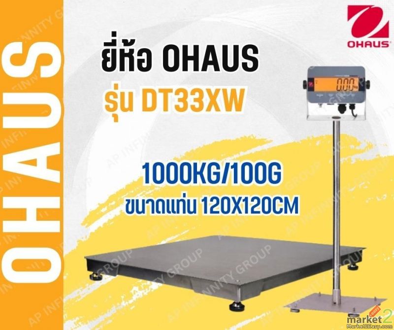 เครื่องชั่งพื้นสแตนเลส1ตัน เครื่องชั่งแสตนเลส1000กิโลกรัม ความละเอียด 100g เครื่องชั่งดิจิตอลตั้งพื้นกันน้ำ OHAUS T32XW แท่นชั่งเป็นสแตนเลสขนาด 120 120เซนติเมตร